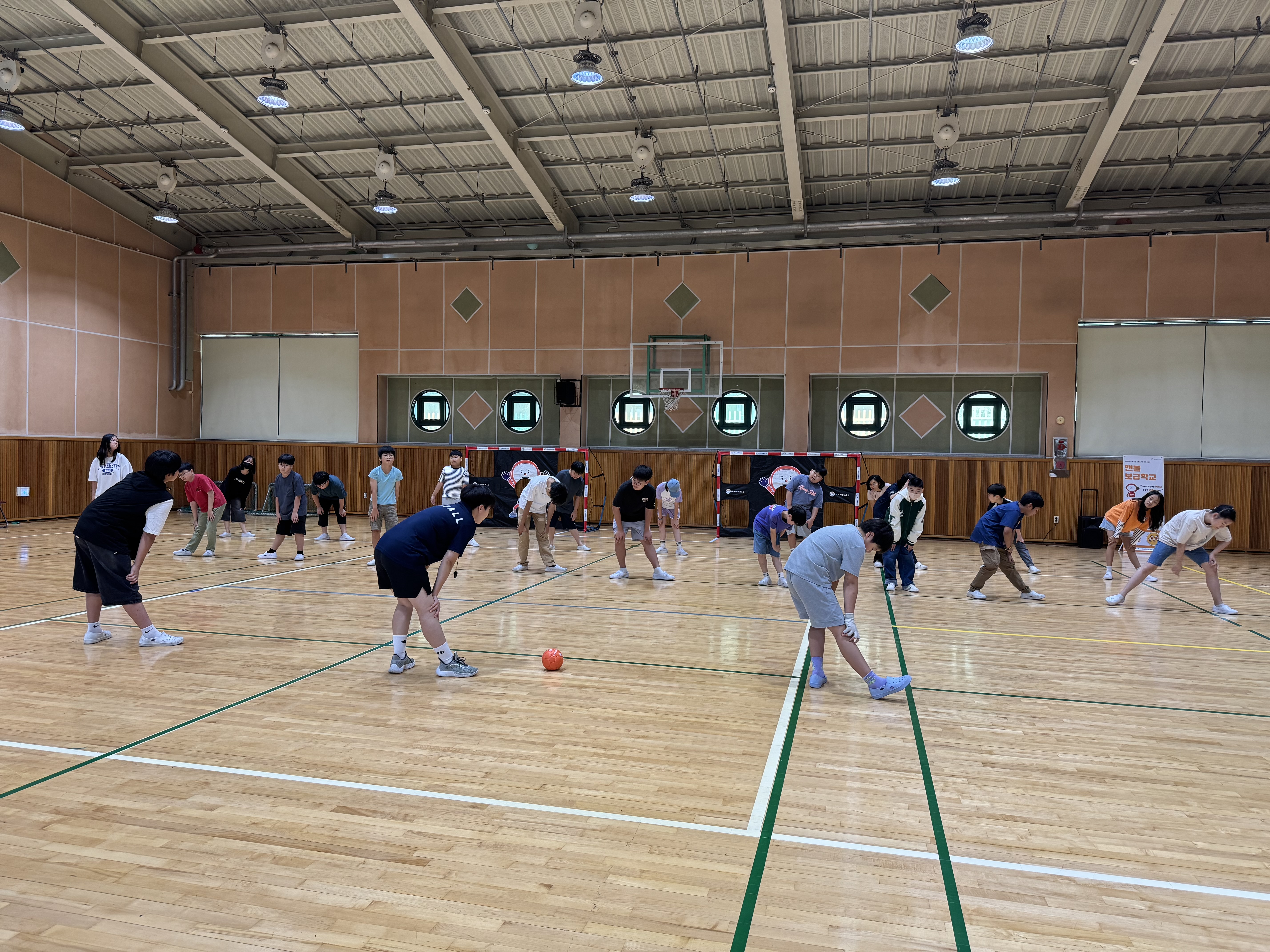 간단한 핸볼 소개를 마친 후, 부상 방지를 위해 스트레칭을 진행했습니다.