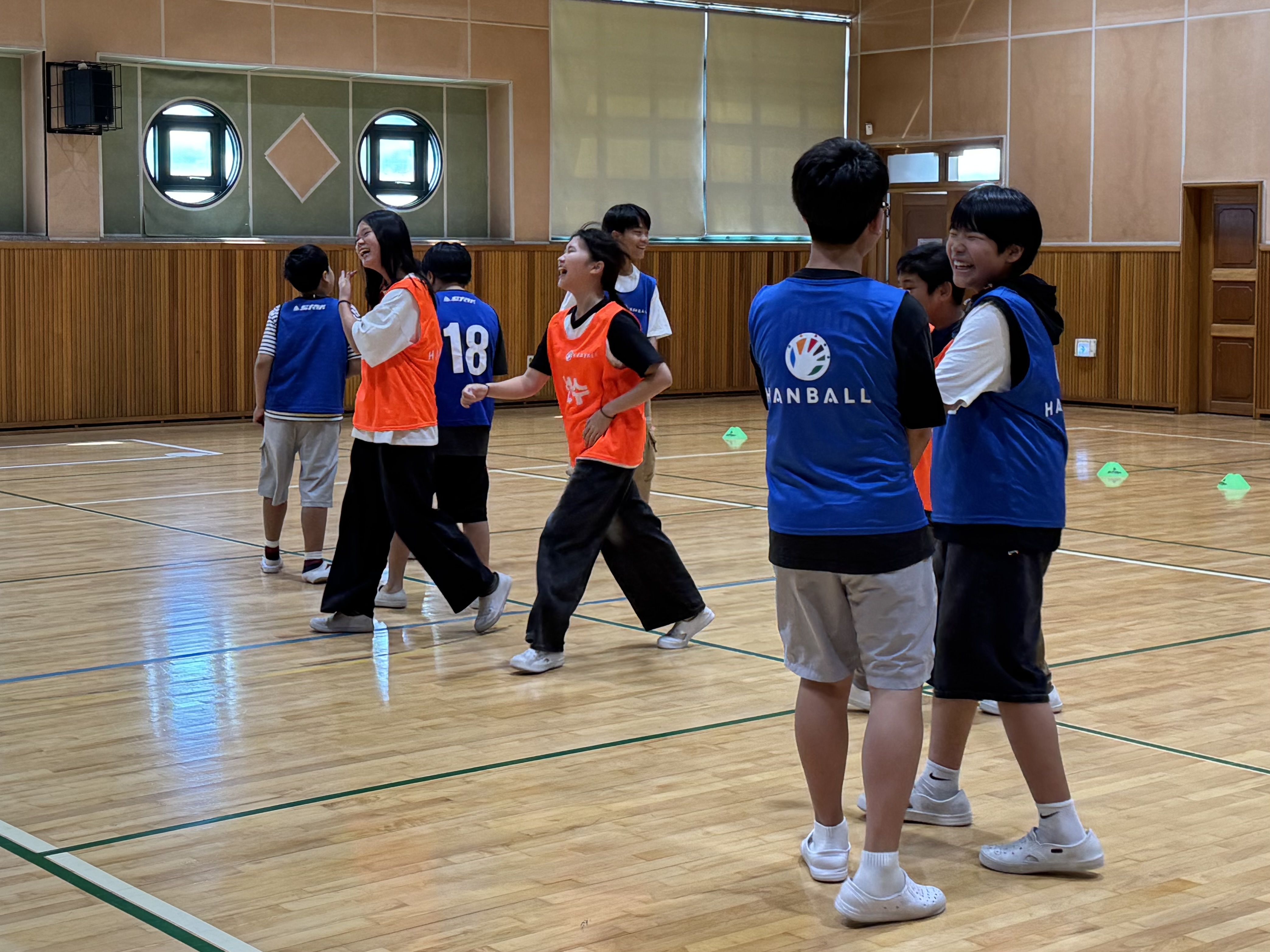 즐거운 핸볼 경기로 학생들의 얼굴에서도 웃음꽃이 활짝 피어납니다!