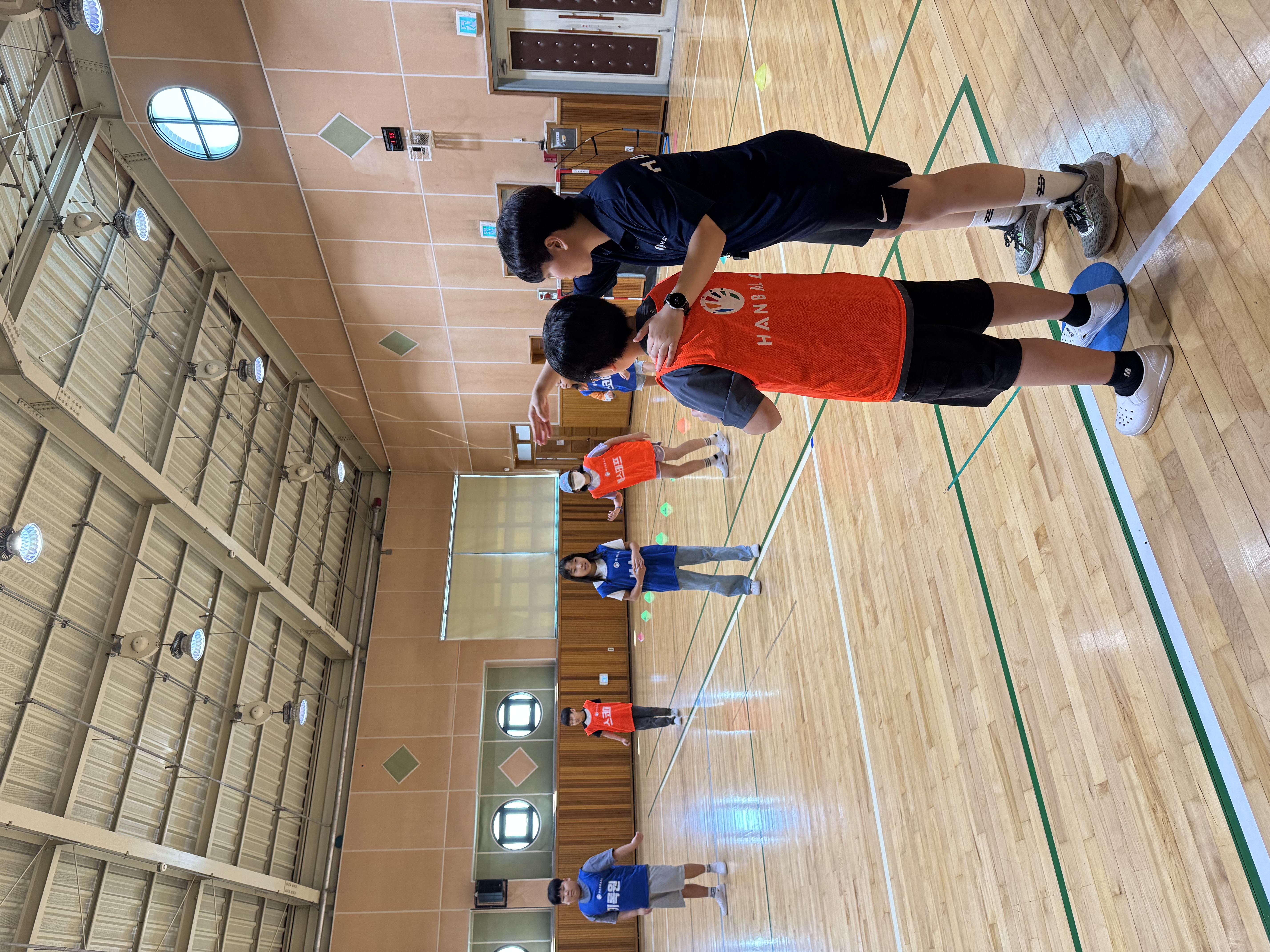 이후, 워밍업 프로그램으로 핸볼 공 옮기기 게임을 진행했는데요!