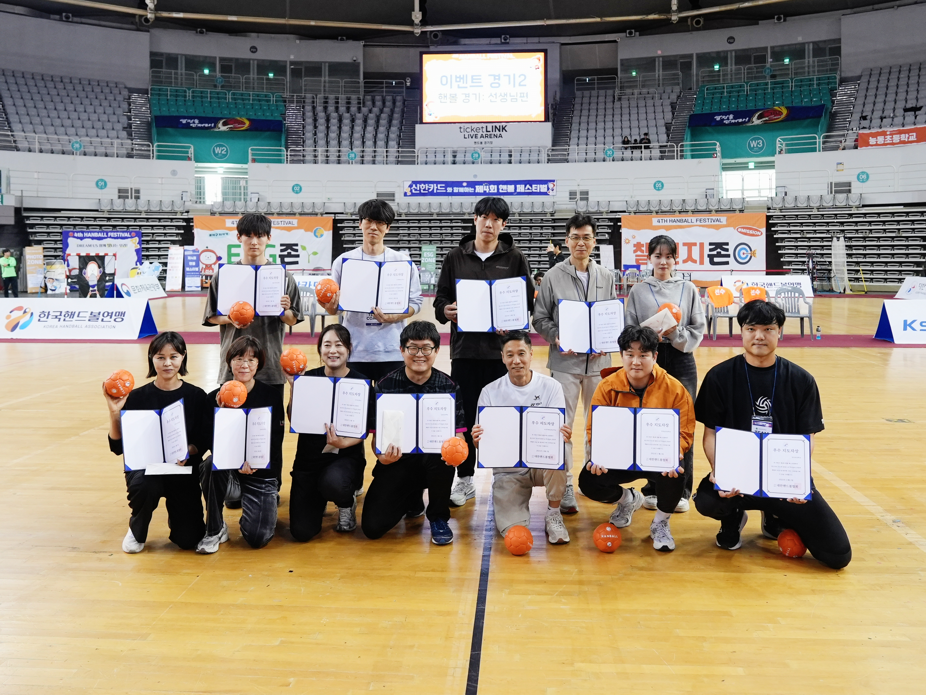 경기 이후 핸볼 페스티벌을 위해 수고해주신 모든 선생님께 ’우수 지도자상‘을 수여하였습니다!