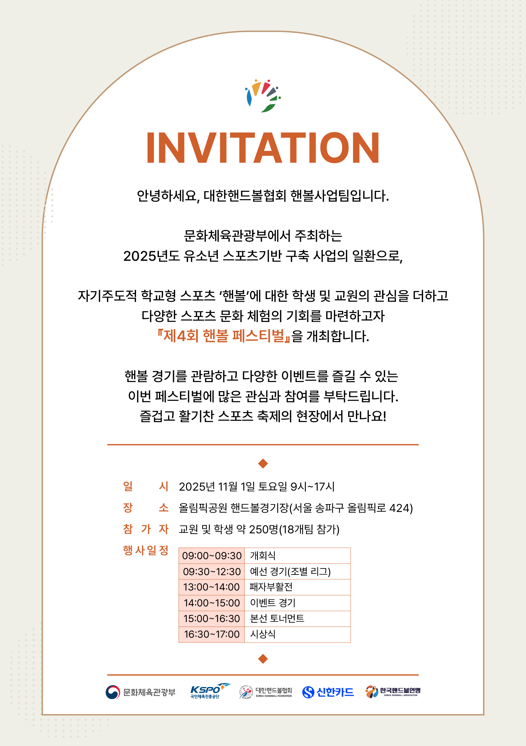 다가오는 2025년 11월 1일(토), 올림픽공원 핸드볼경기장에서 『제4회 핸볼 페스티벌』이 개최됩니다!