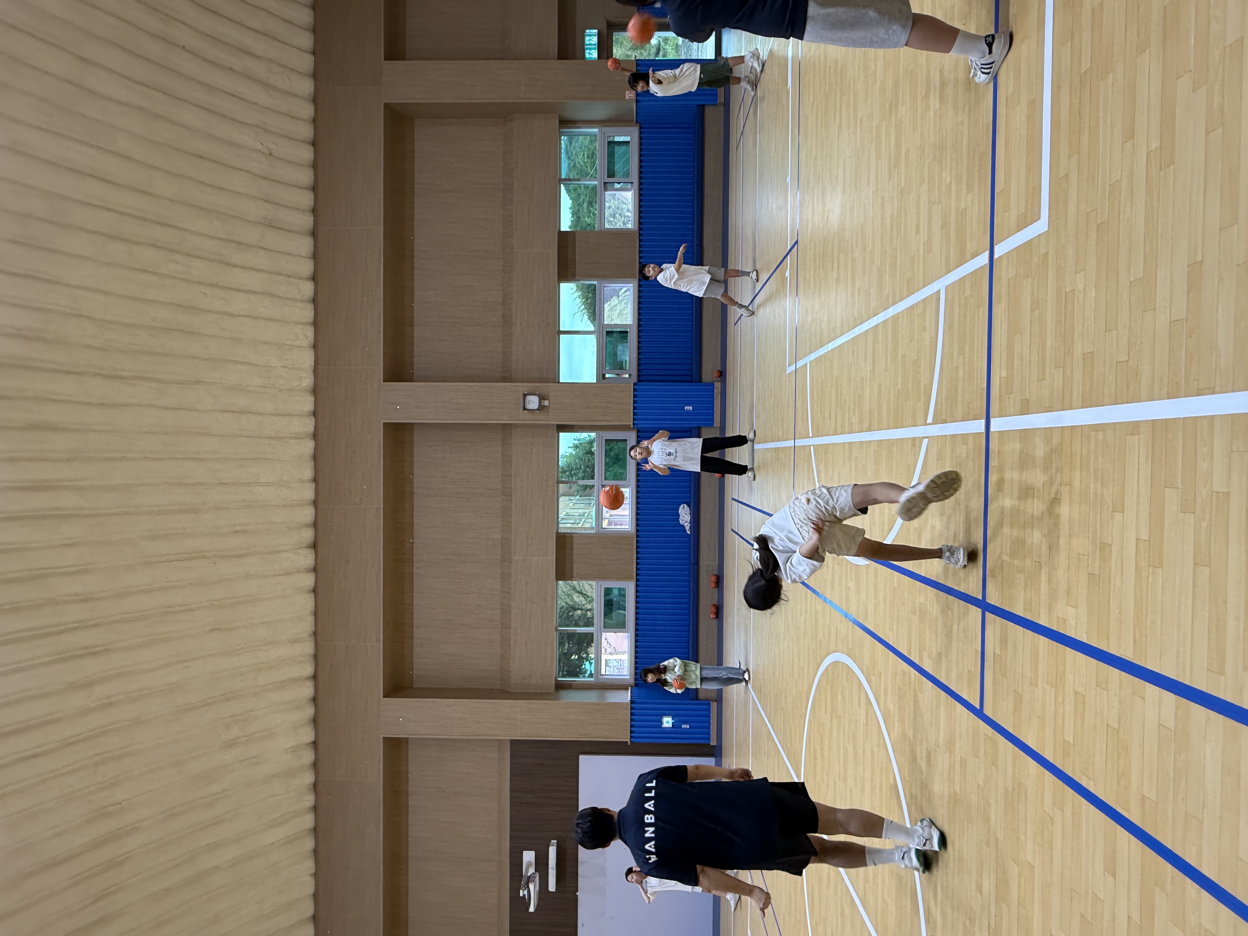 저희 사업팀이 학교에 도착했을 때 핸볼 슈팅을 연습하고 있는 5학년 친구들의 모습을 보고 오늘의 강습이 어떨지 무척 기대되었답니다!