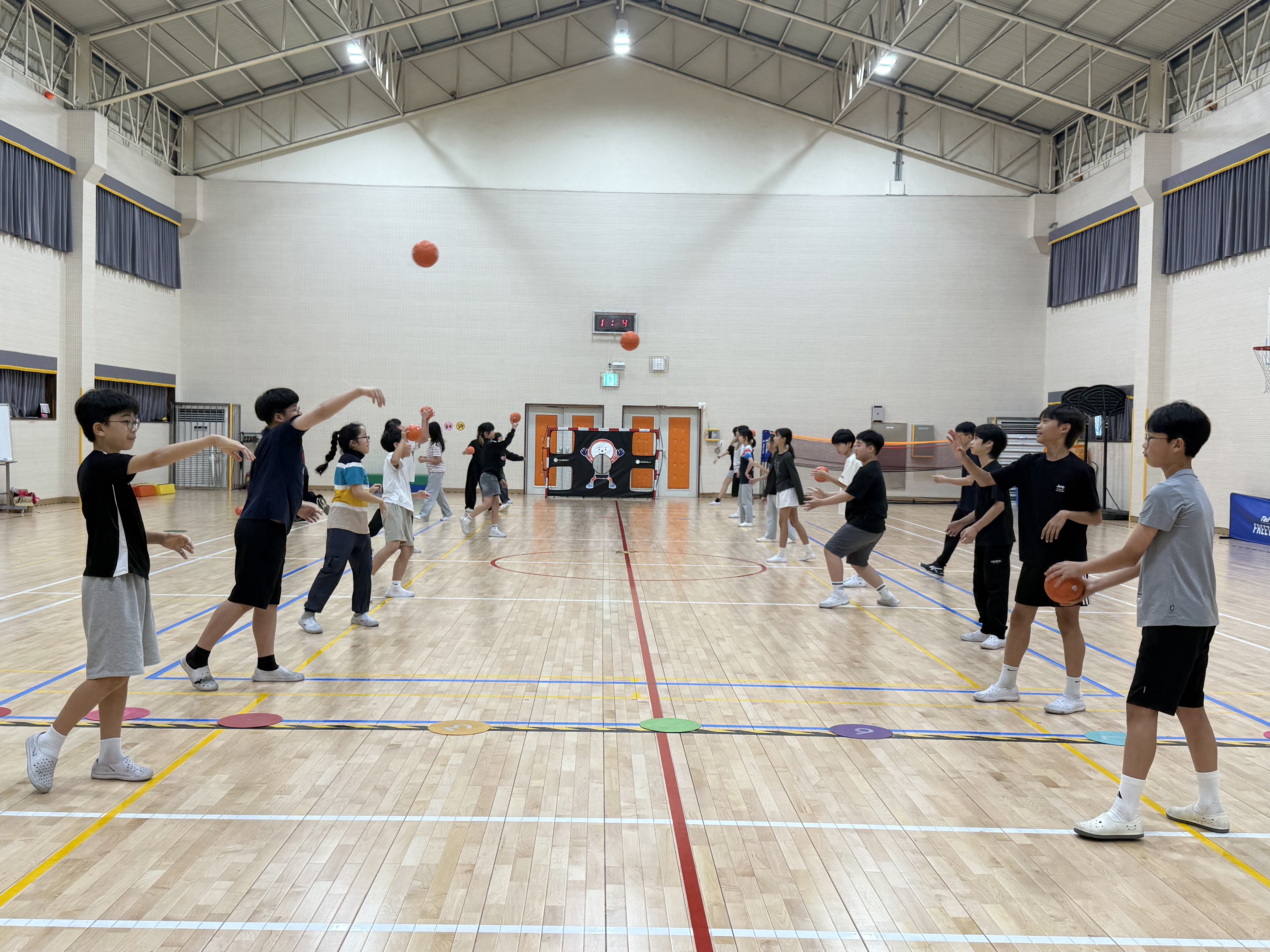 공을 다룰 때 장난을 치거나 위험한 행동을 하지 않도록 확실하게 인지시킨 후 수업을 시작했습니다.
