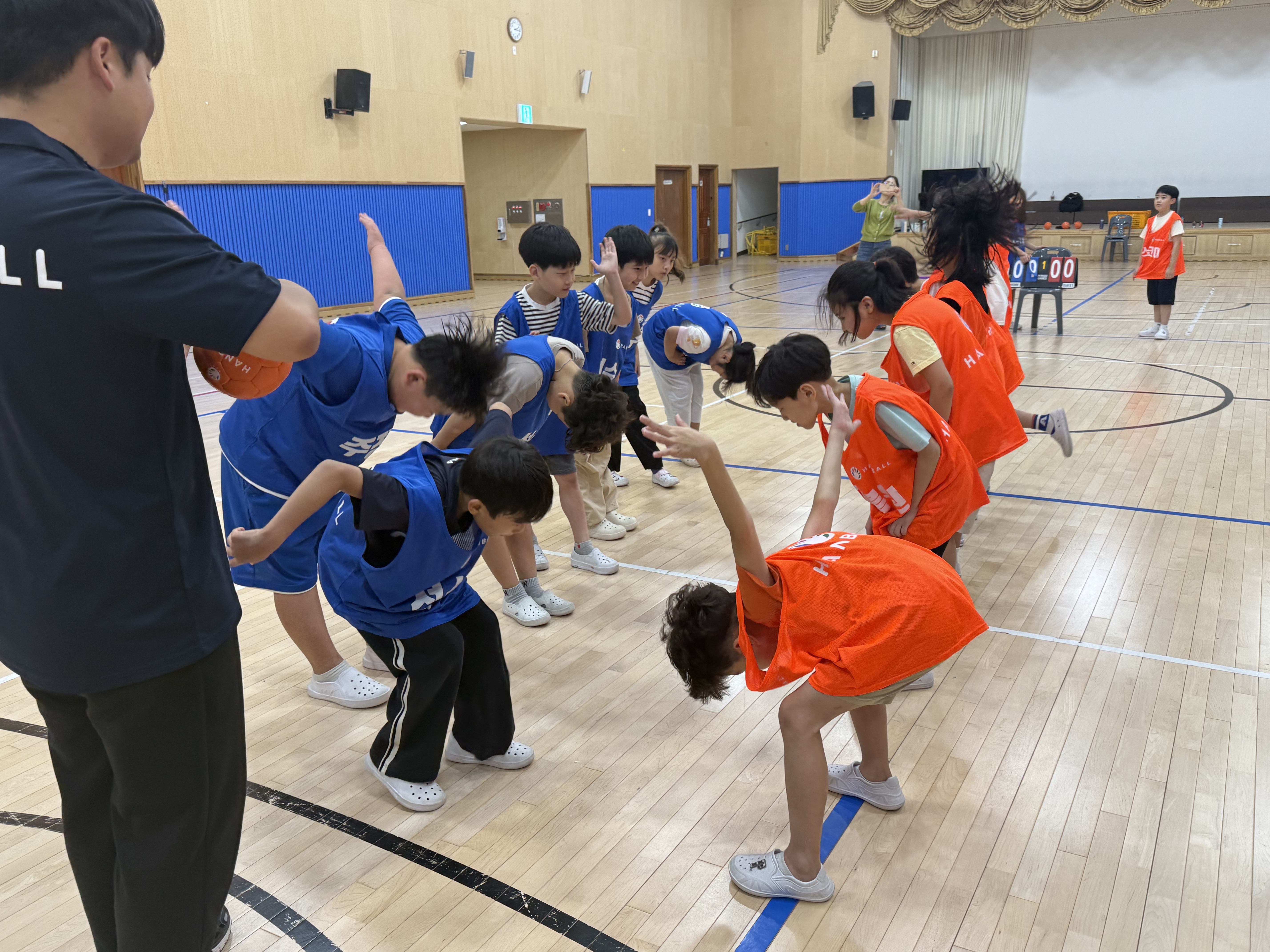 핸볼 경기 전 학생들이 핸볼과 관련된 많은 응용 게임을 접할 수 있도록