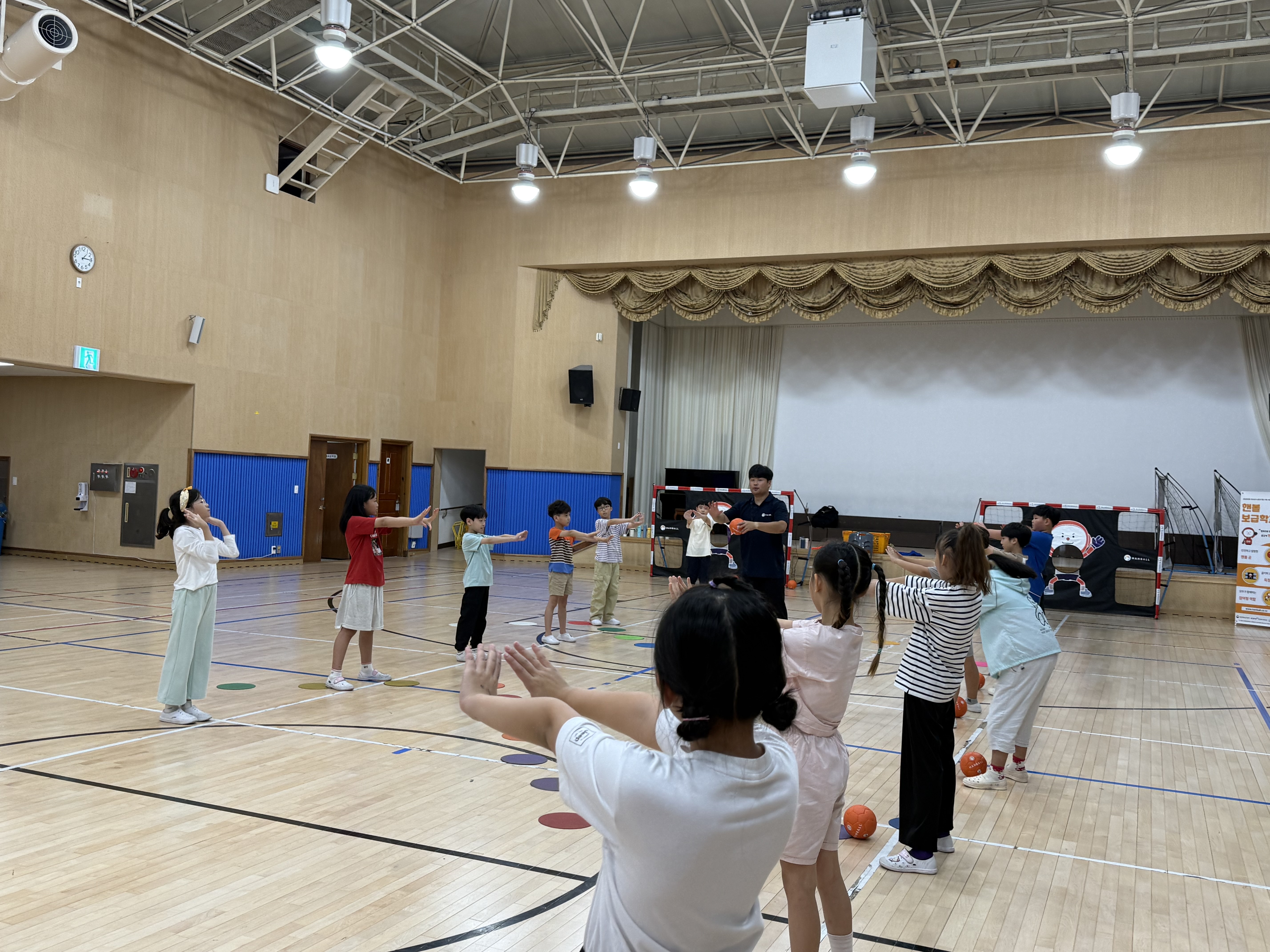 마지막으로 승부 던지기도 체험해 보며 즐거웠던 핸볼 강습을 마무리하였습니다.