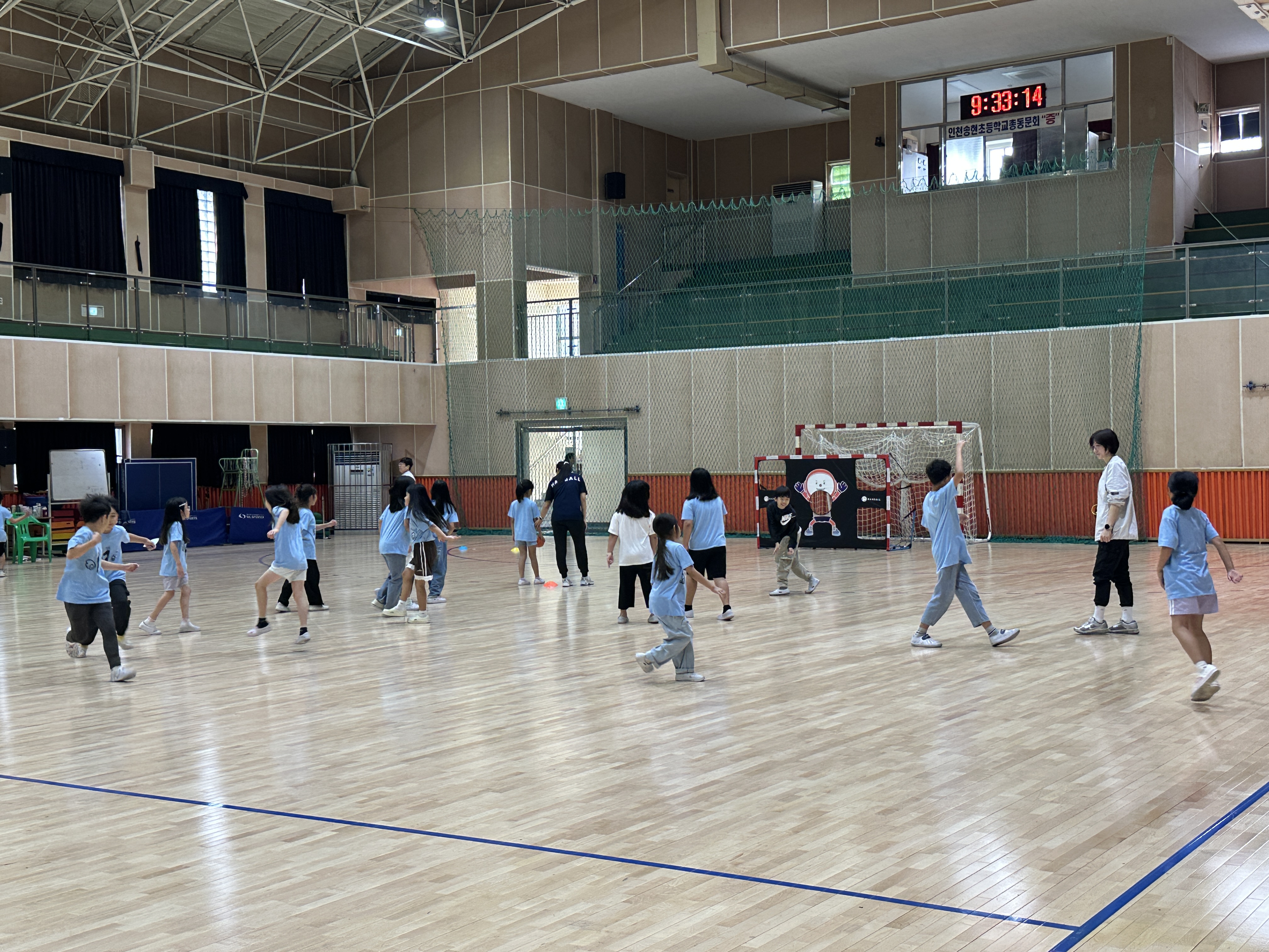 간단한 활동임에도 아이들의 웃음과 발걸음 소리로 체육관이 금세 활기찬 분위기로 가득 찼답니다.
