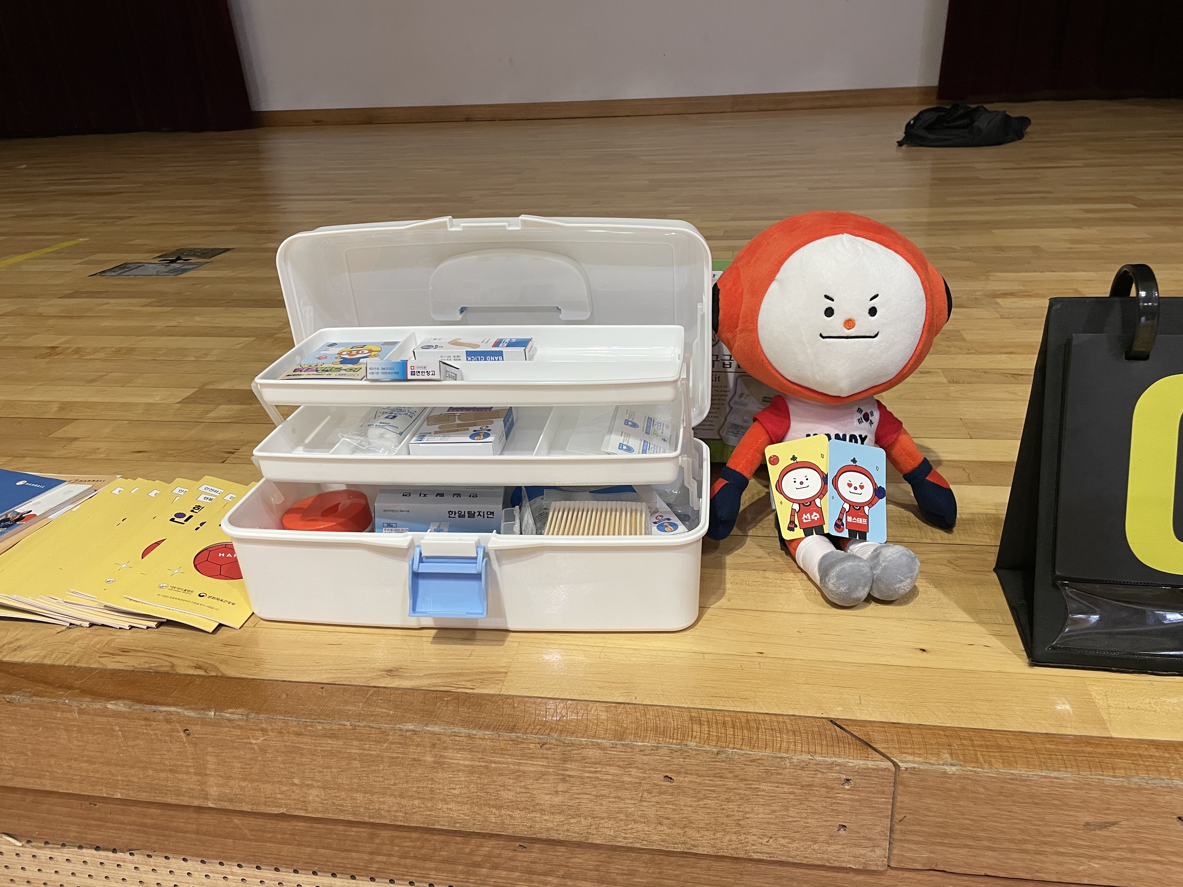 핸볼 경기 전 혹시 모를 부상에 대비한 구급 약품 준비 완료!