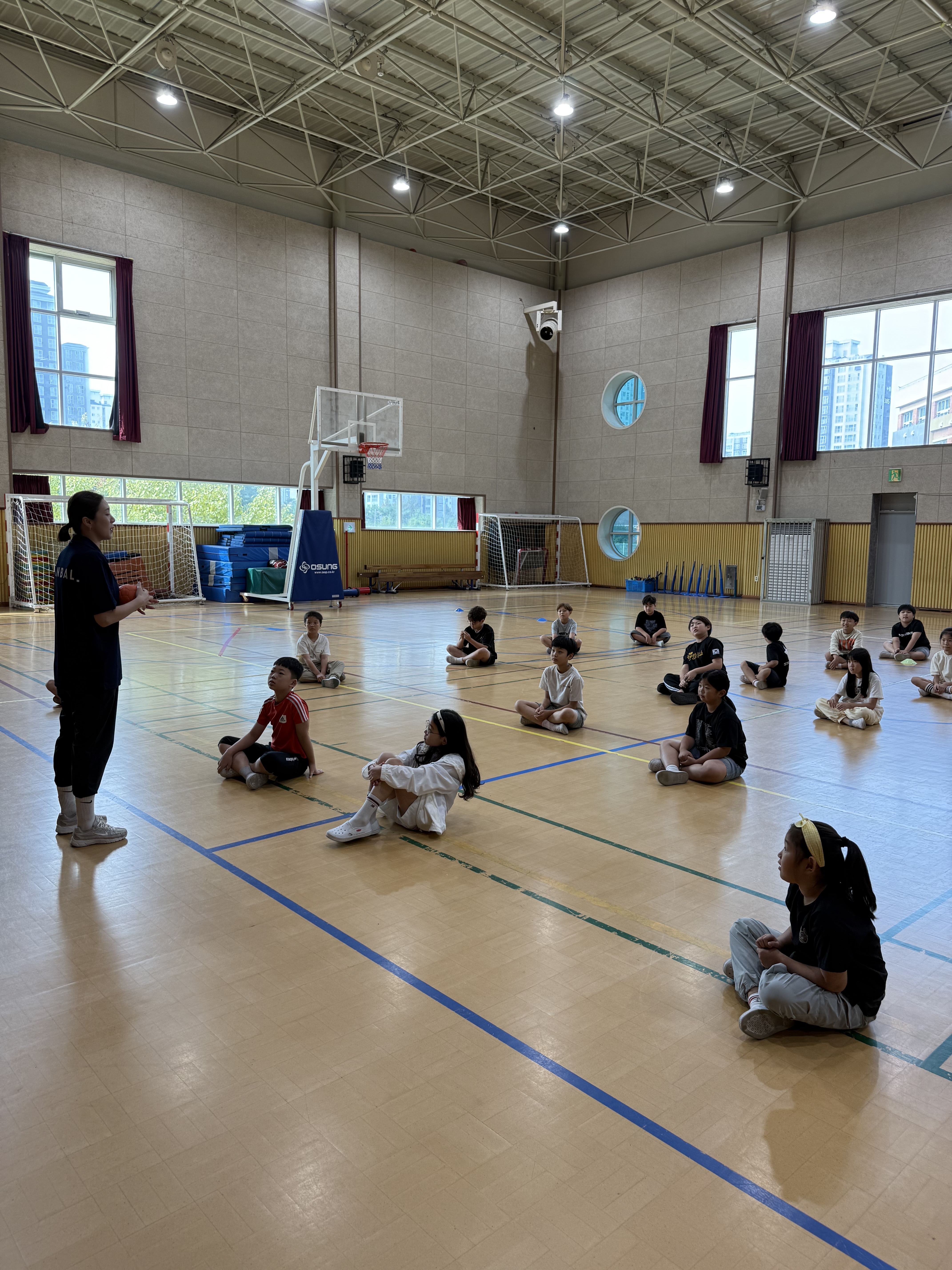 핸볼만의 매력 포인트를 설명하자 학생들이 눈을 반짝이며 집중하는 모습에서 벌써부터 기대감이 느껴졌답습니다!