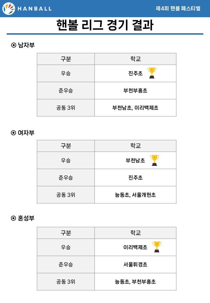 2025년 11월 1일에 개최되었던 제4회 핸볼 페스티벌의 경기 결과를 공개합니다.